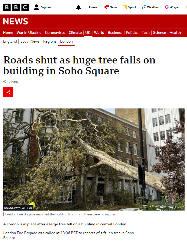 This tree fell in Soho Square in May 2022 and was on the BBC news!